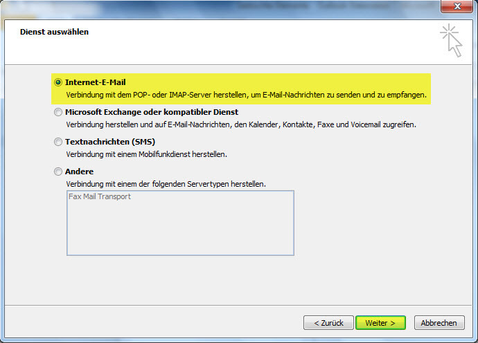 3. Wählen Sie "Internet-E-Mail"
