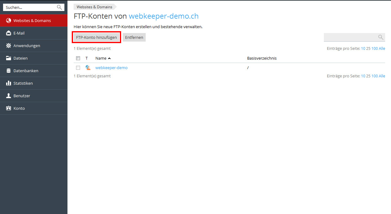Manchmal ist es sinnvoll, für diverse Aufgaben oder Zugriffslevels separate FTP-Benutzer einzurichten, die auf verschiedene Ordner in Ihrem Hosting Zugriff haben.